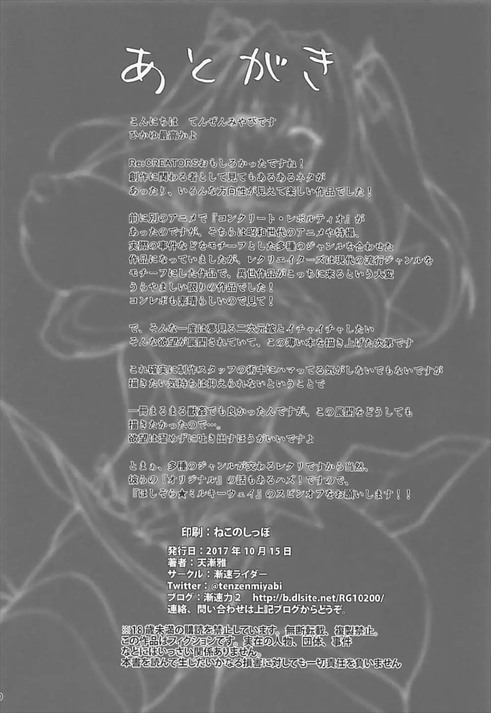 (C94) [Zensoku Rider (Tenzen Miyabi)] HoshiMil Tonkan Route (Re:Creators)