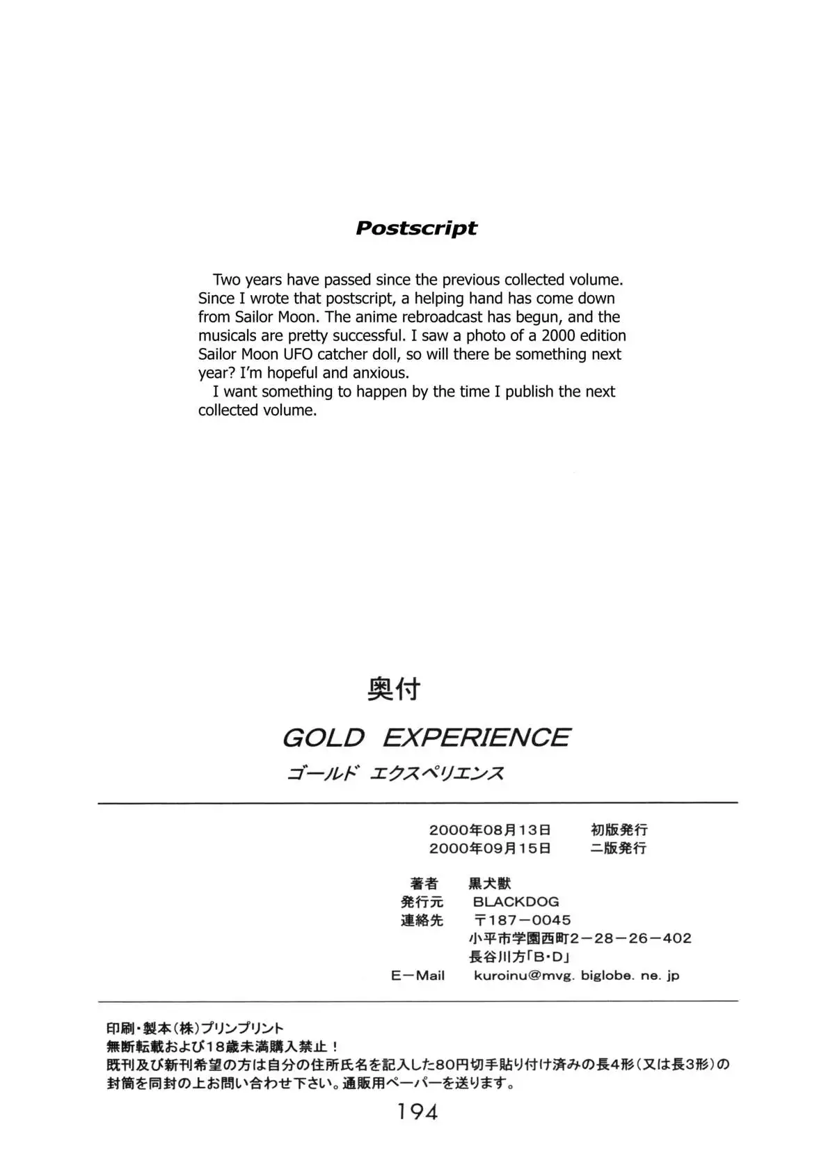 (C58) [BLACK DOG (Kuroinu Juu)] GOLD EXPERIENCE (Sailor Moon) [2nd Edition]