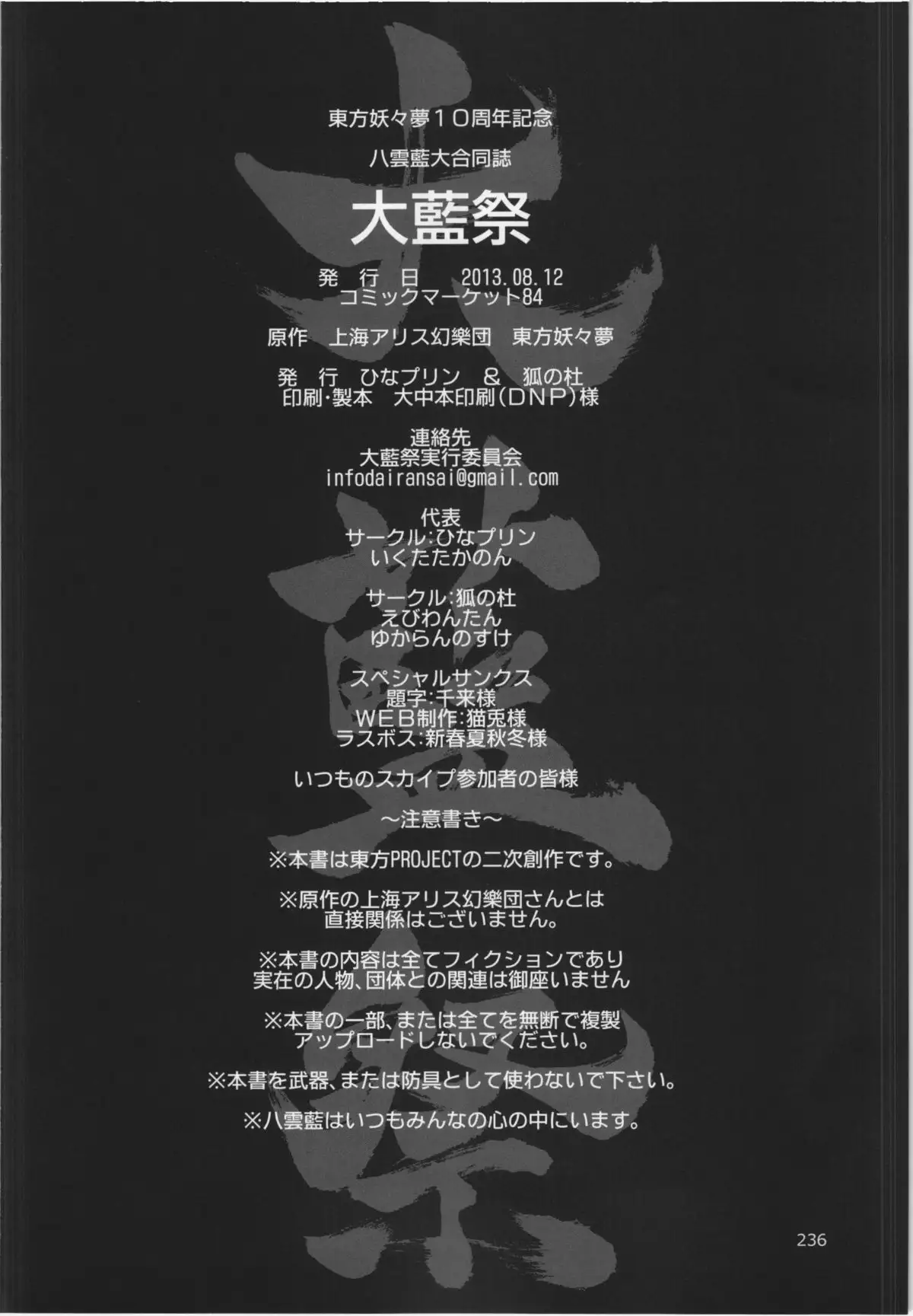 (C84) [Hinaprin, Kitsunenomori (Various)] Dairansai (Touhou Project) Hentai Porn (C84) [ひなプリン、狐の杜 (よろず)] 大藍祭 (東方Project)