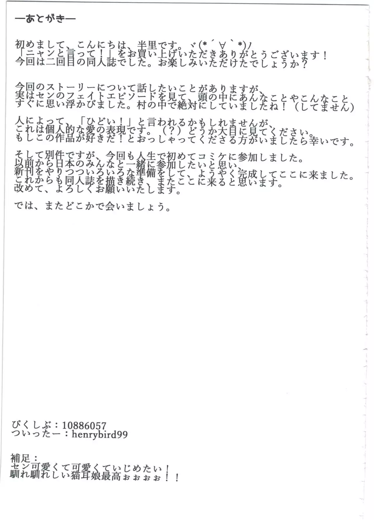 (C91) [Tuzi Laoda (Henrybird9)] Sen-chan! Nyan to Itte!! | Say Nyaa for me! (Granblue Fantasy) [English] [Nisashi13]