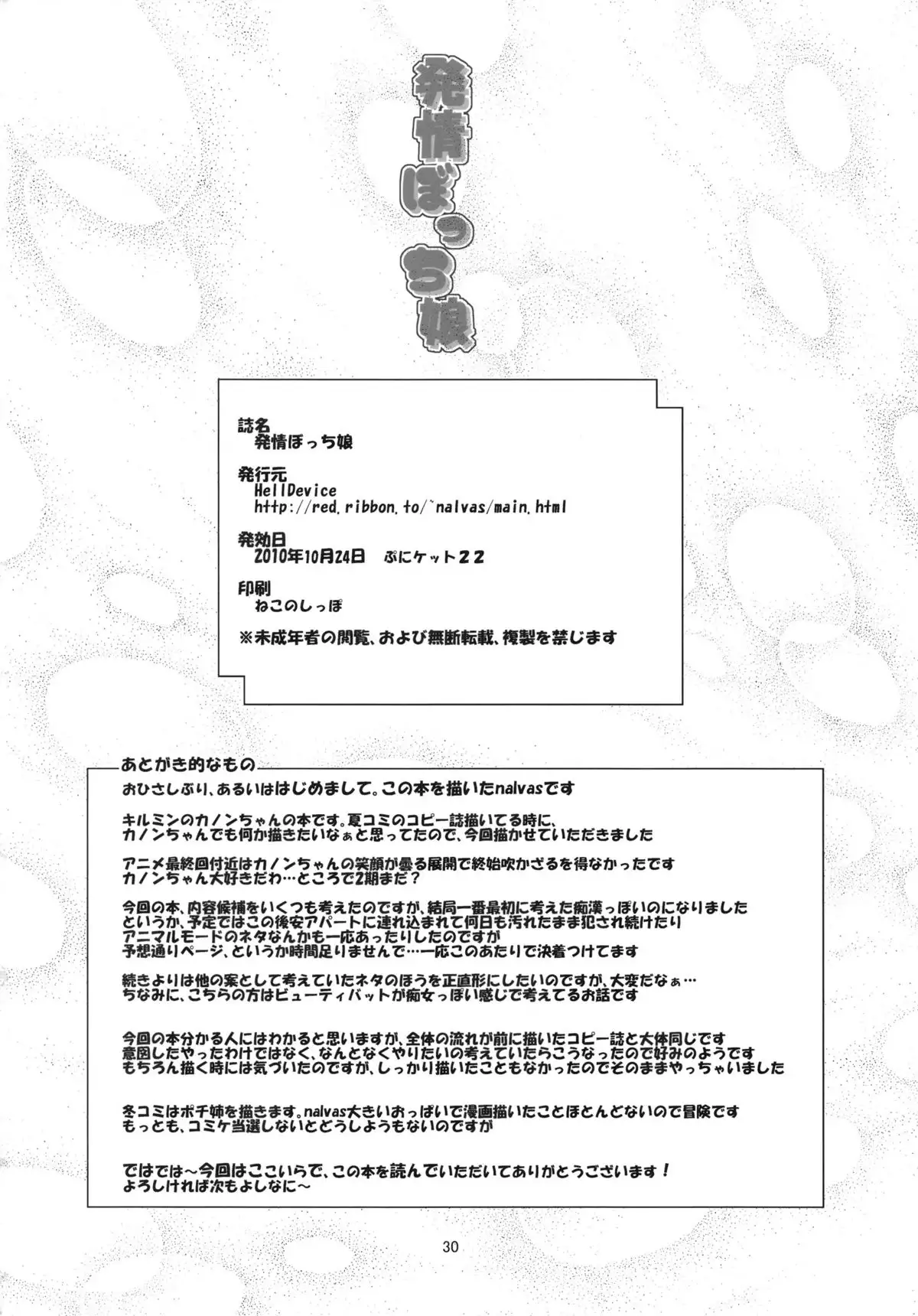 (SC49) [HellDevice (nalvas)] Hatsujou Bocchiko (Anyamaru Tantei Kiruminzoo) Hentai Porn (サンクリ49) [HellDevice (nalvas)] 発情ぼっち娘 (あにゃまる探偵 キルミンずぅ)